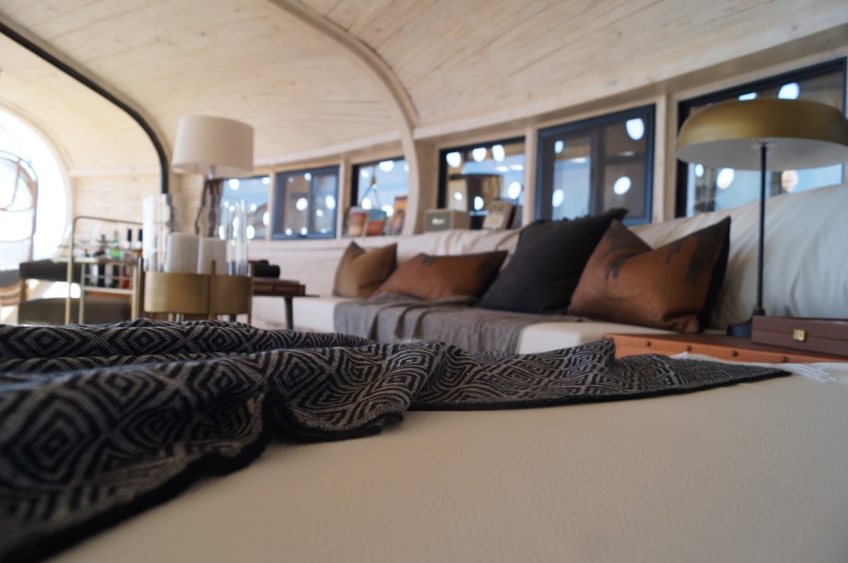 Being made using a metal frame and constructed completely from wood, the capsule blends seamlessly into the natural desert environment.